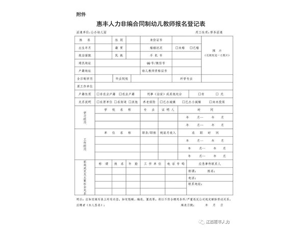 為滿足我市公辦幼兒園師資需求,我公司面向社會(huì)公開招聘一大批非事業(yè)編合同制幼兒教師,以勞務(wù)派遣的方式與用人單位進(jìn)行勞動(dòng)力資源開發(fā)合作?,F(xiàn)將有關(guān)事項(xiàng)公告如下:一、招聘人數(shù)及崗位我市招聘非事業(yè)編合同制幼兒教師50名,具體崗位在選崗前公示。二、招聘方式通過第三方勞務(wù)公...